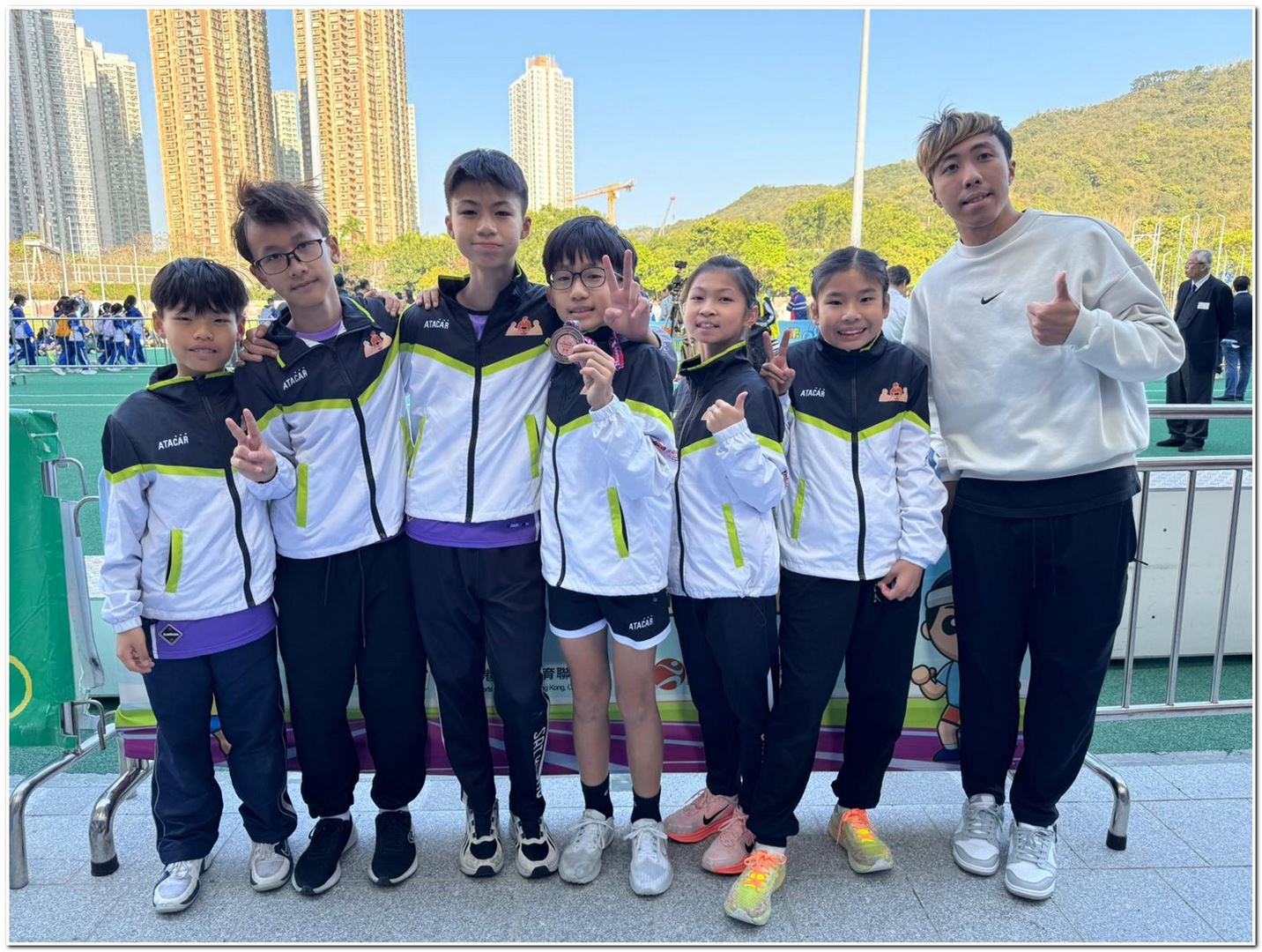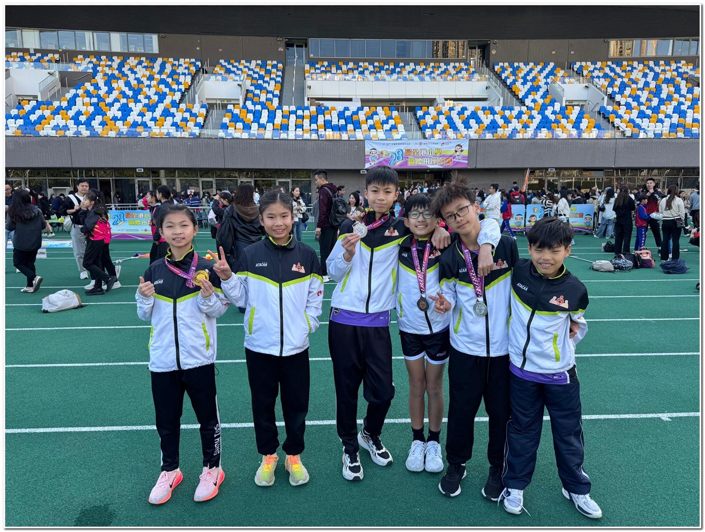 在本年度全港小學區際田徑比賽中,本校派出7位同學代表西貢區出賽,成功獲取獎項,當中王濼愉同學於女子乙組60米獲得第一名、連晉熙同學於男子乙組跳遠獲得第三名,而張逸駿、陳柏言同學代表西貢於男子甲組4x100米獲得第二名。