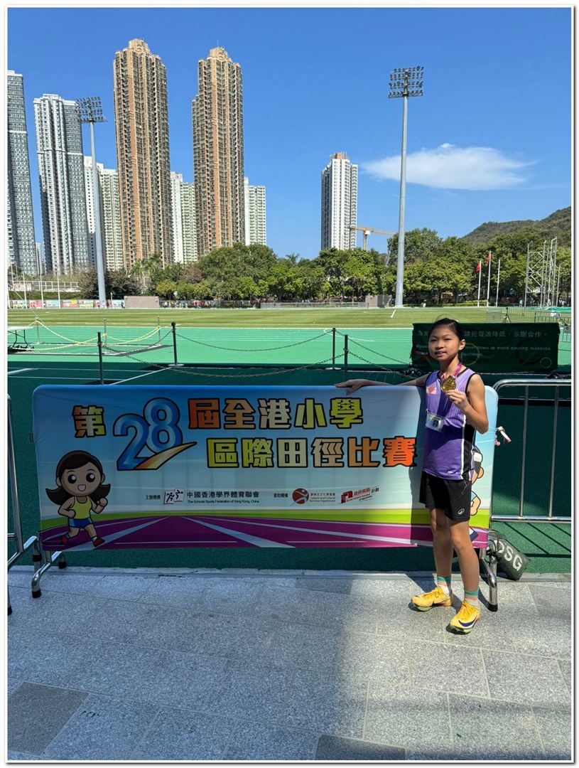 在本年度全港小學區際田徑比賽中,本校派出7位同學代表西貢區出賽,成功獲取獎項,當中王濼愉同學於女子乙組60米獲得第一名、連晉熙同學於男子乙組跳遠獲得第三名,而張逸駿、陳柏言同學代表西貢於男子甲組4x100米獲得第二名。