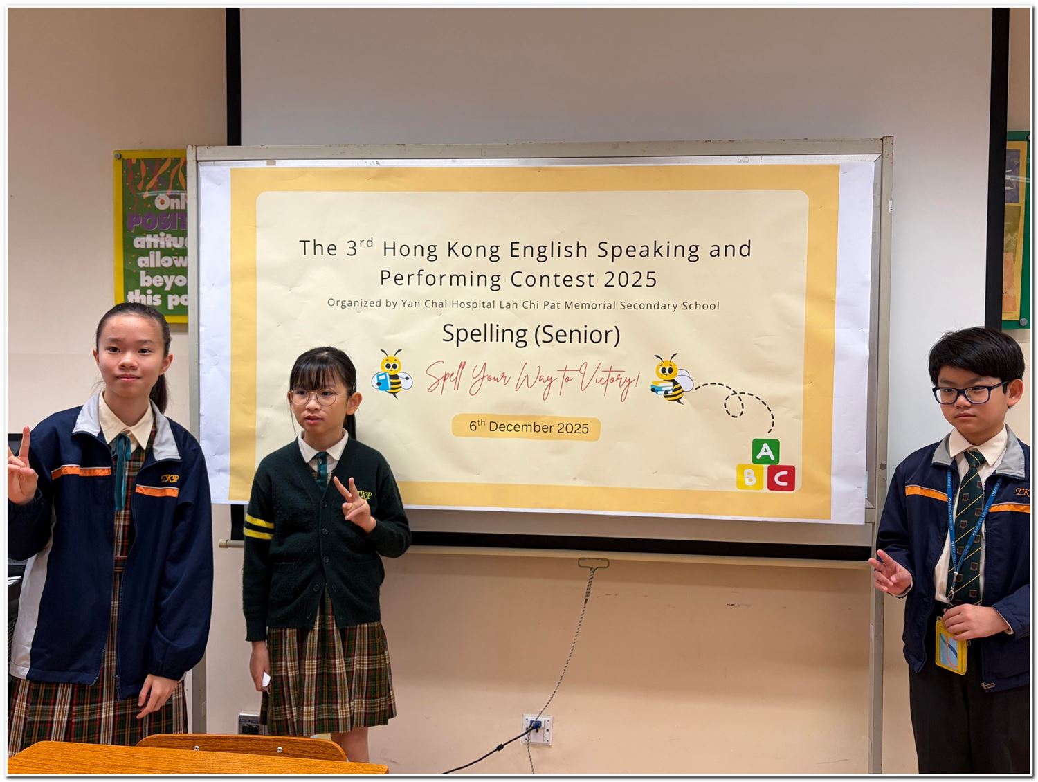 Our students have joined the 3rd Hong Kong English Speaking and Performing Contest organized by Lan Chi Pat Memorial Secondary School. They have participated in group singing and group spelling categories which allow them to showcase their English skills and enhance English learning.