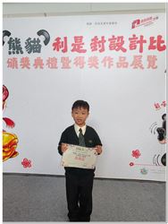 是次比賽由香港青少年輔導協會主辦,以「熊貓」為設計主題,希望透過比賽鼓勵學生發揮創意,提高自信心並可弘揚中國傳統文化,參與人數眾多。經香港青少年輔導協會評選後,由本校1D班余政宏同學在眾多參賽者中脫穎而出,成功取得初小組別「入圍獎」,在此向政宏同學致以熱烈祝賀!