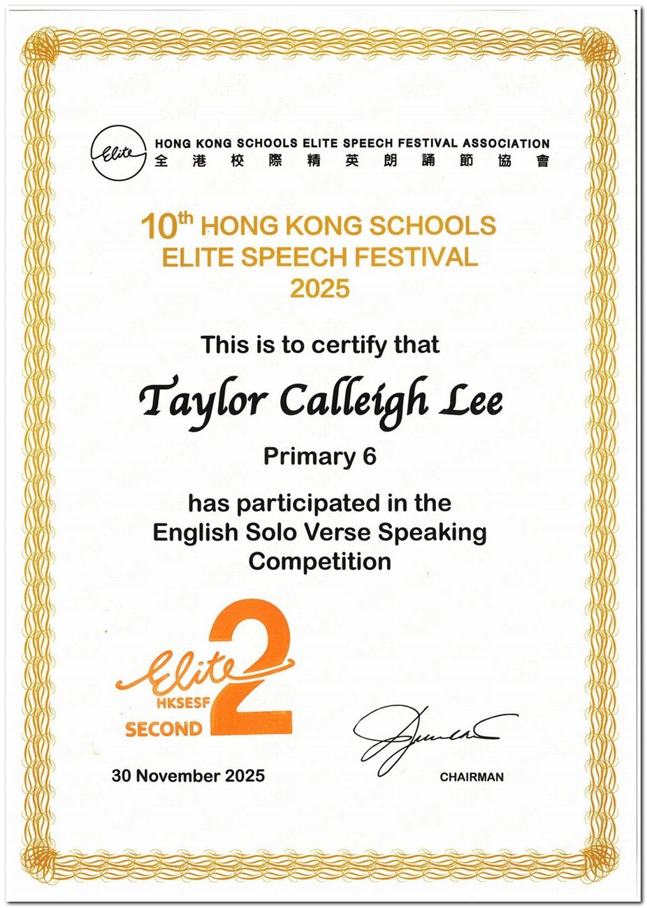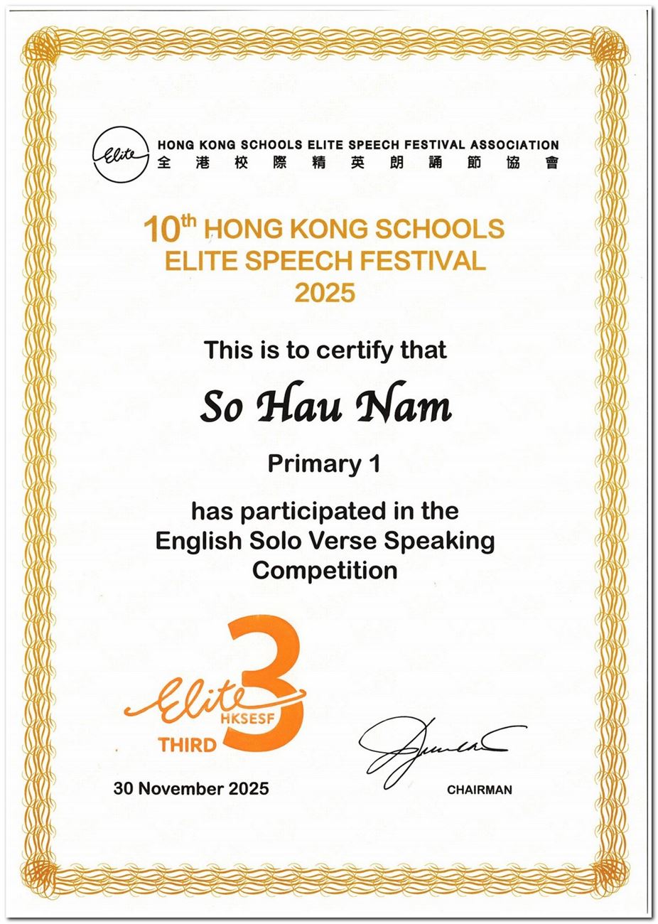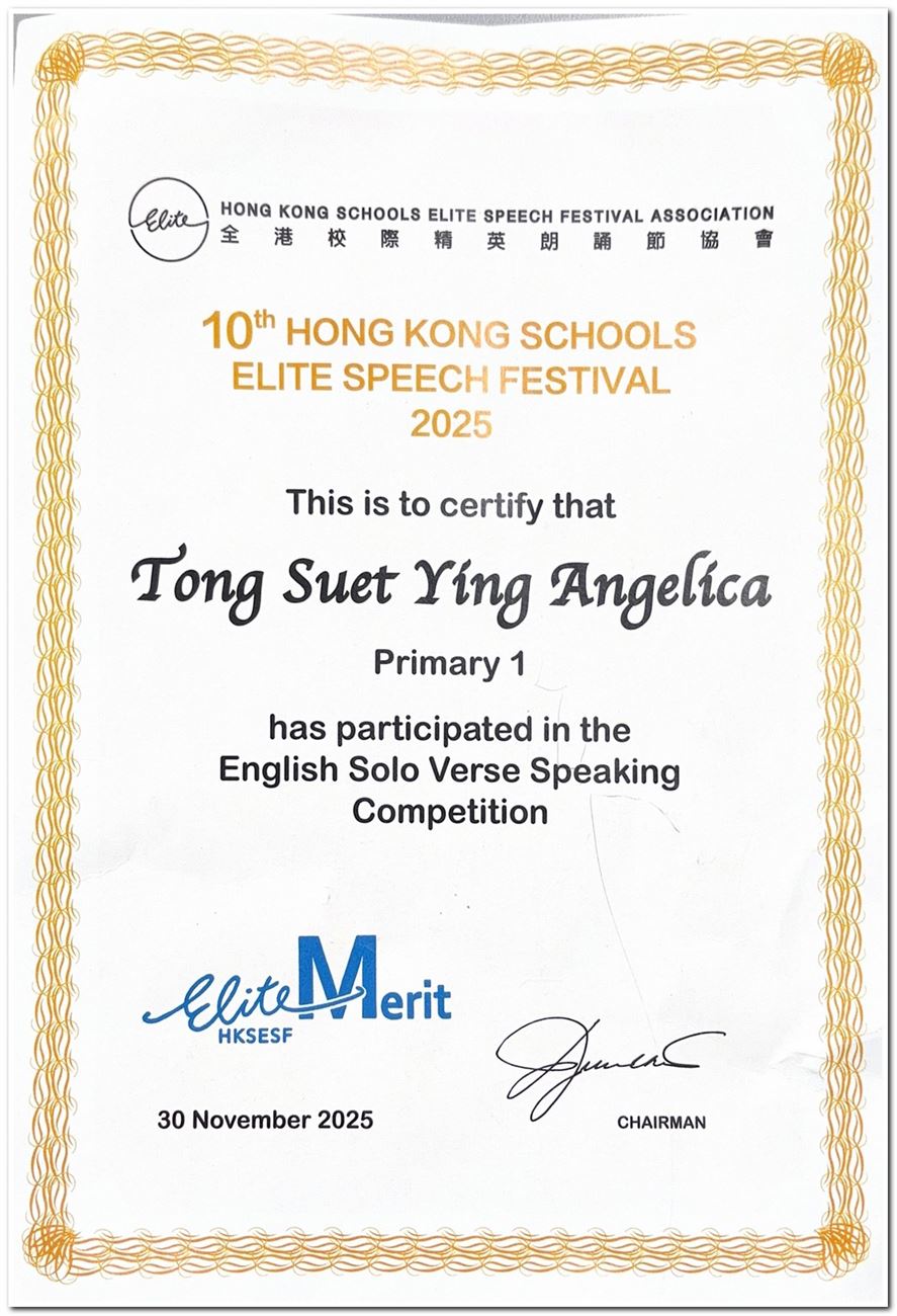 Our students have joined the 10th Hong Kong Schools Elite Speech Festival organized by Hong Kong School Elite Speech Festival Association. The participants have showcased their exceptional linguistic talent and interpretive ability.